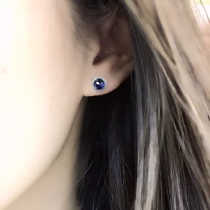 Rosie 5.0mm Blue Corundum & Diamond Post Earrings