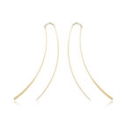 This pair of 14 karat yellow gold small double wire threader earrings are 1.5 inches long.